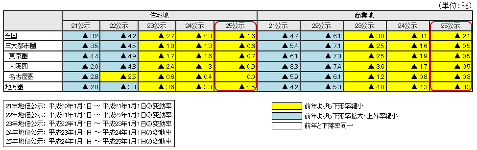 ※引用元 国土交通省土地総合情報ライブラリー 昭和50年以降の地価変動率の推移
